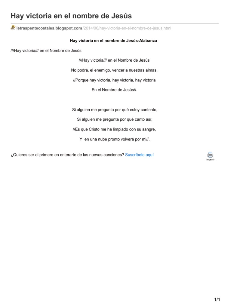 Y fue jesús quien te exhibió y te derrotó, a tus huestes y potestades el las aplastó, porque el murió pero resucitó por mi y esto solo fue el principio de tu fin. Suya es la victoria, ha vencido ya. En el nombre de jesús. En el nombre de jesús. Suya es la victoria ha vencido ya. Que vive en mí, soy libre al fin. Suya es la victoria ha vencido ya. El nombre de jesús levantado está. Letras, acordes y tabs para guitarra, bajo y ukulele. No nos detendremos, no nos moverán. Que vive en mí, soy libre al fin. Me acerco ante tu presencia ¡oh señor! No nos detendremos no nos moverán.